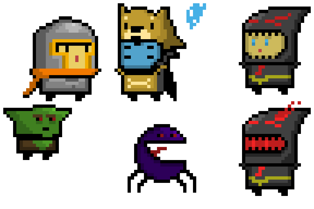 Knight: Is the starting character, has moderate health and armor and his power doubles the weapon he is holding, making double attacks.